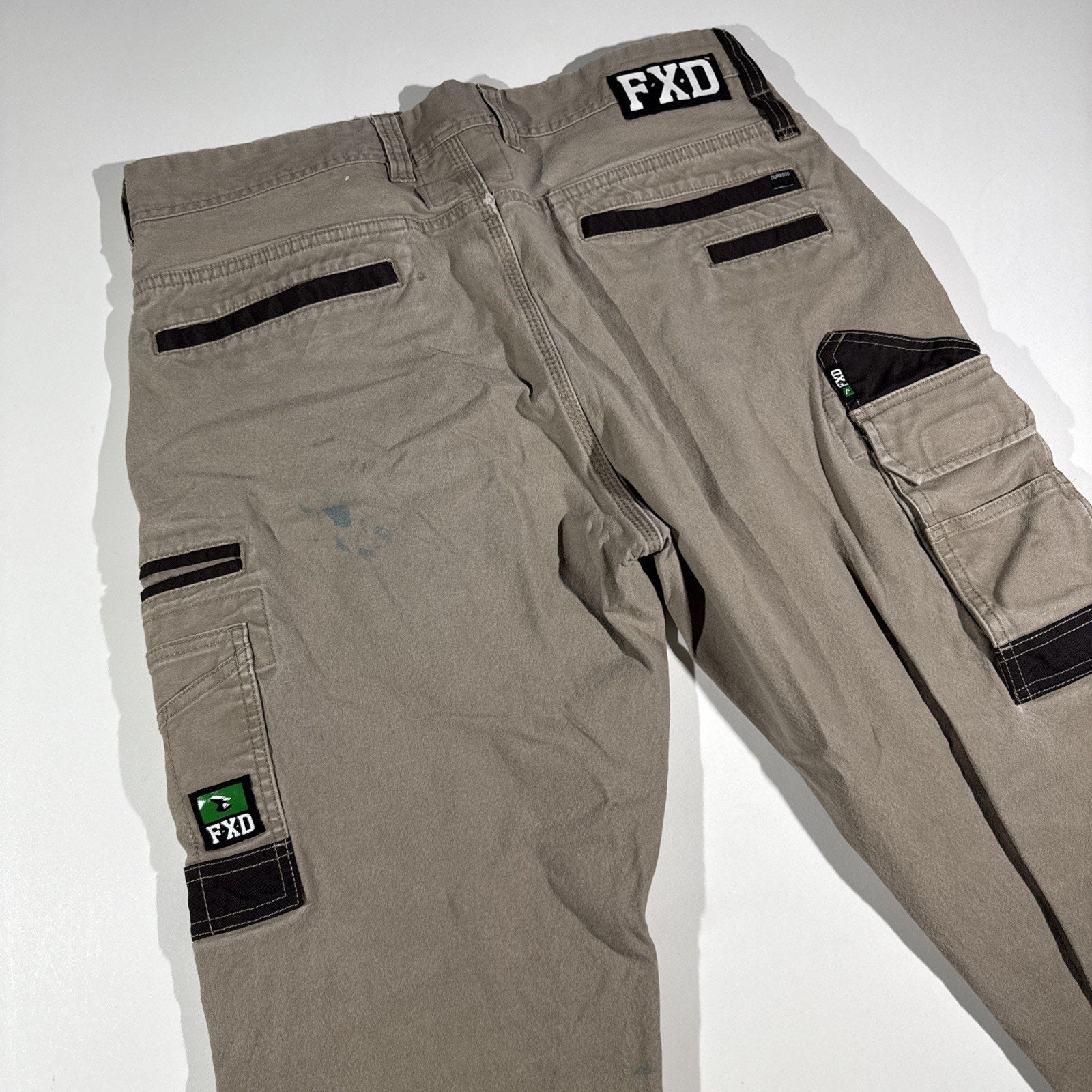 FXD Men's Cargo Tan Beige Work Pants WP4 34x30 Tradie Elastic Cuff Pockets