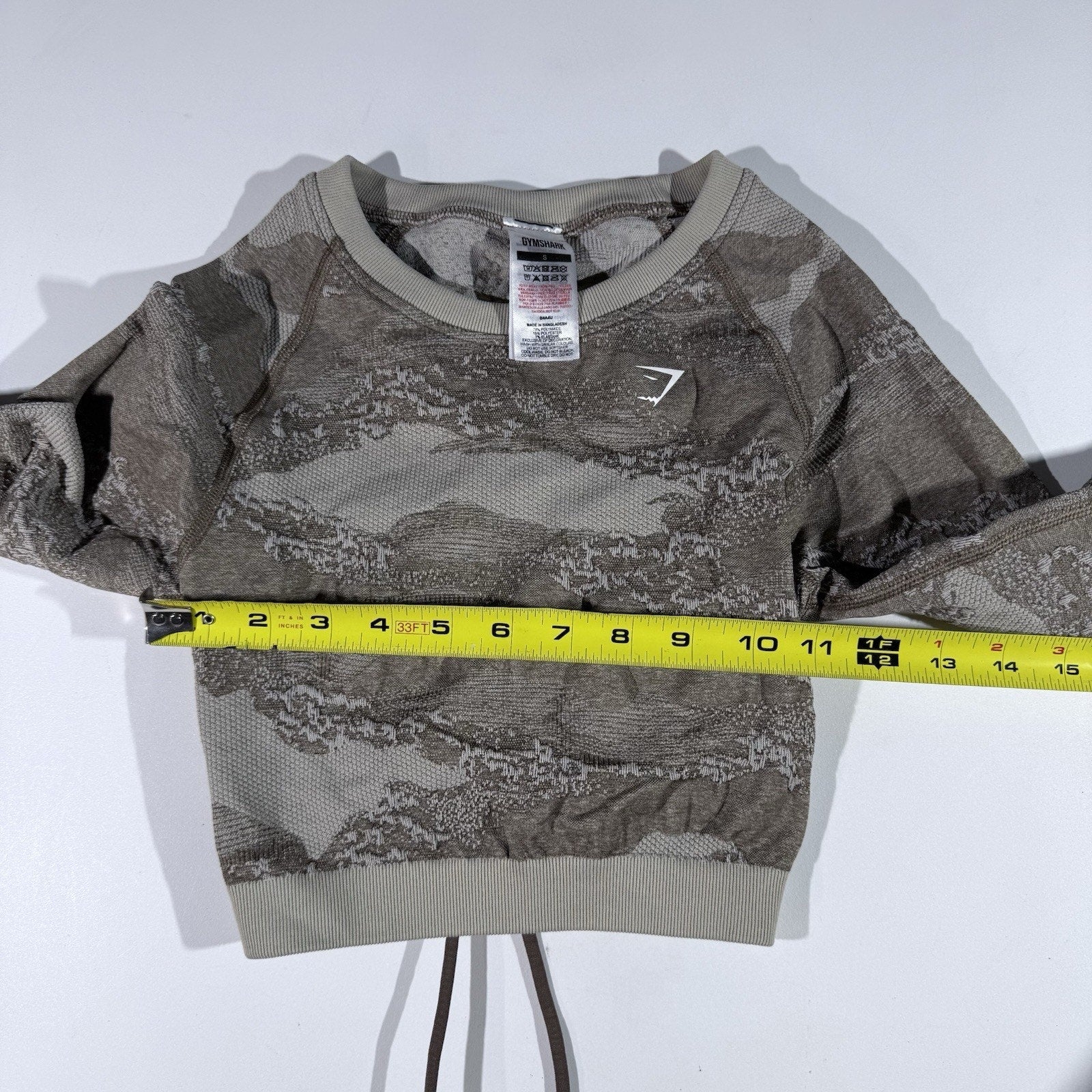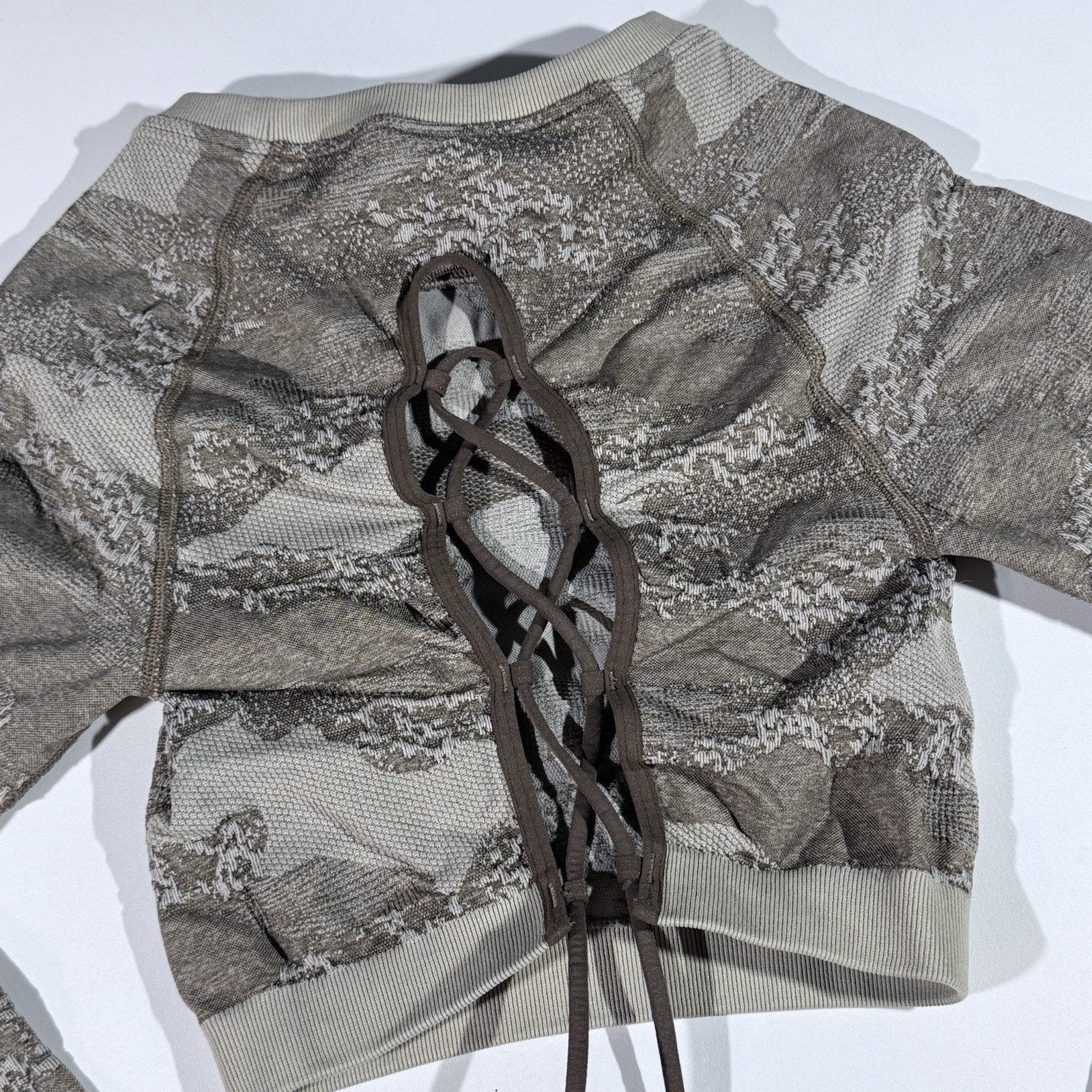 Gymshark Adapt Camo Seamless Lace Back Long Sleeve Crop Top Womens Small Taupe