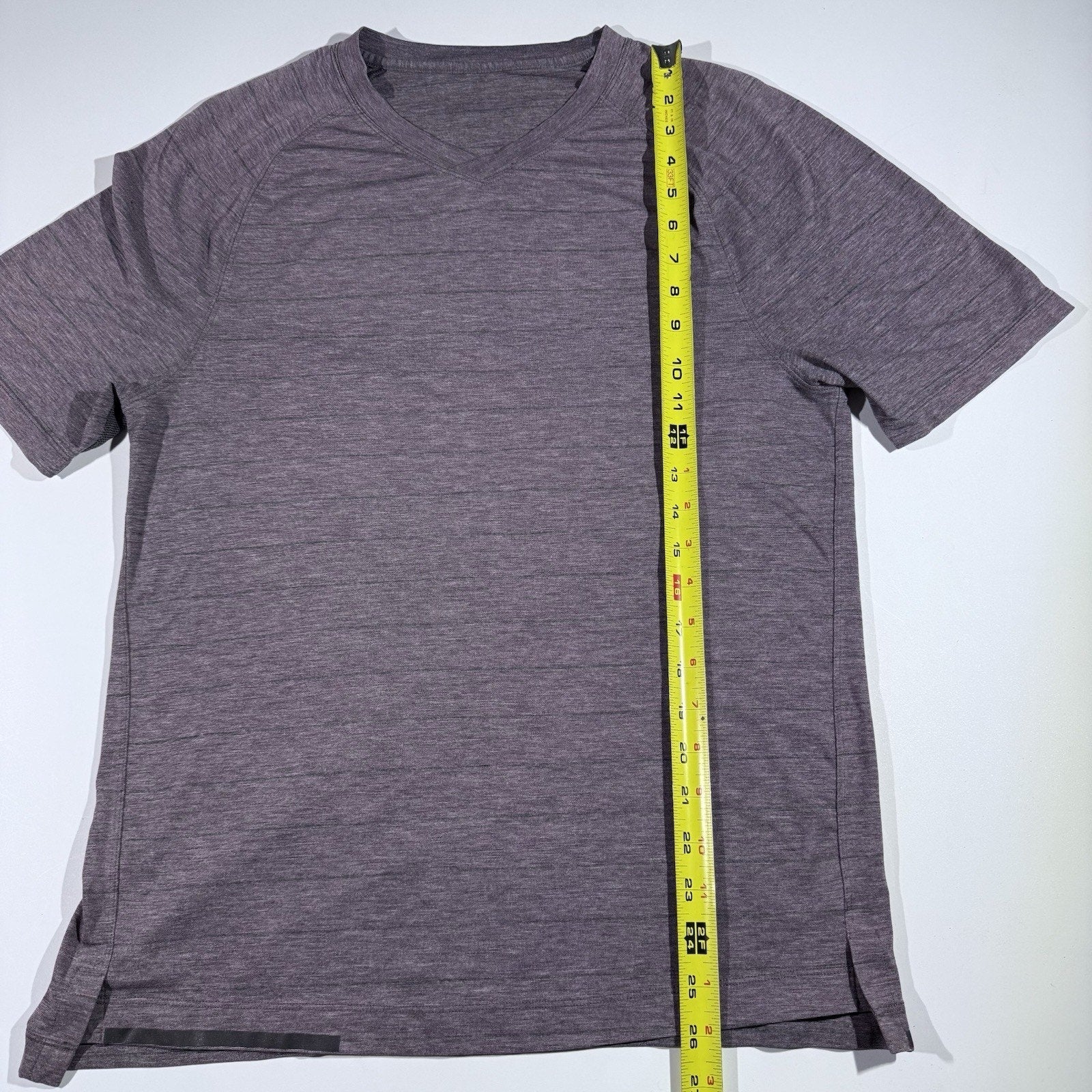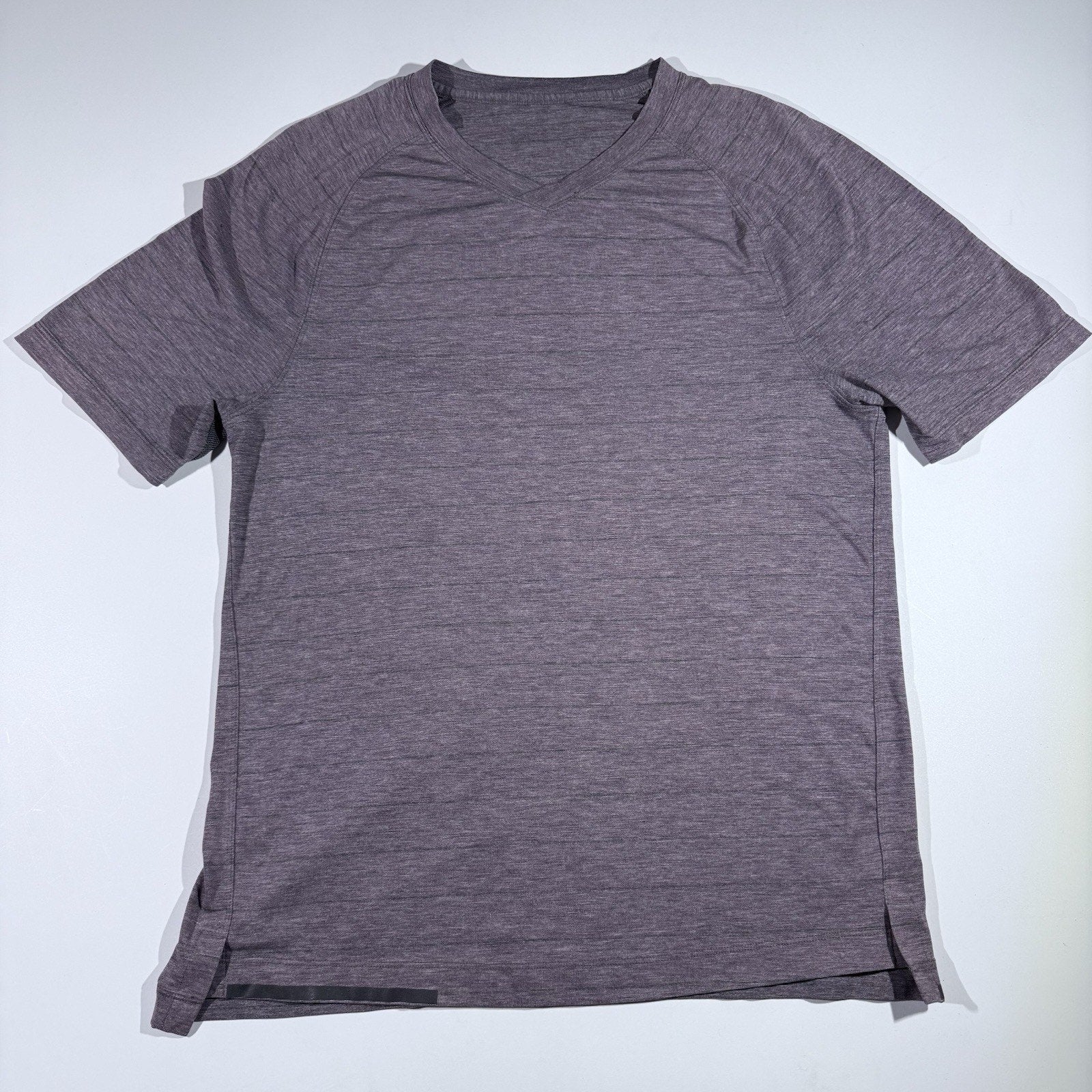 Lululemon Shirt Mens Medium Stripe V Neck Athletic Tee Lightweight Purple Gray