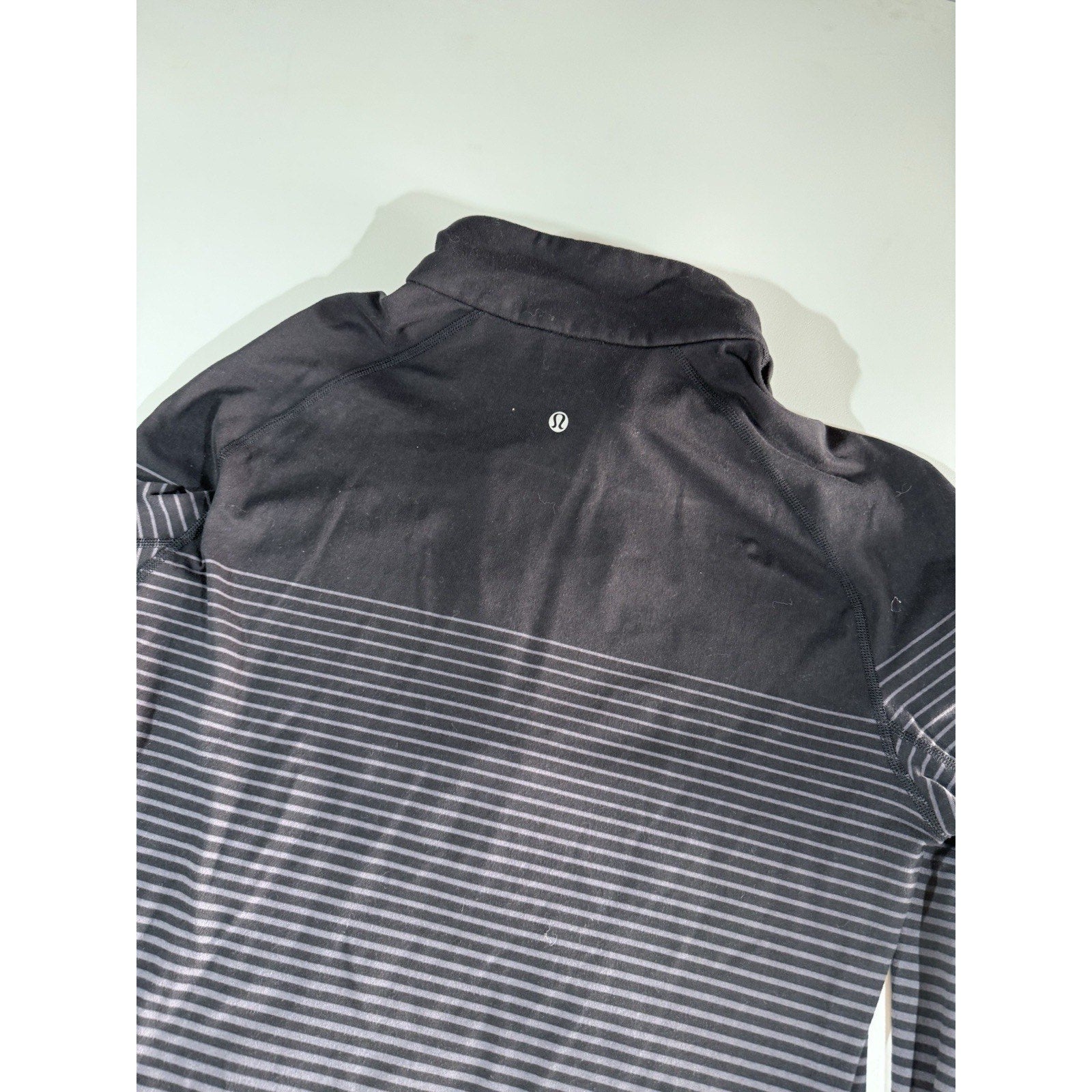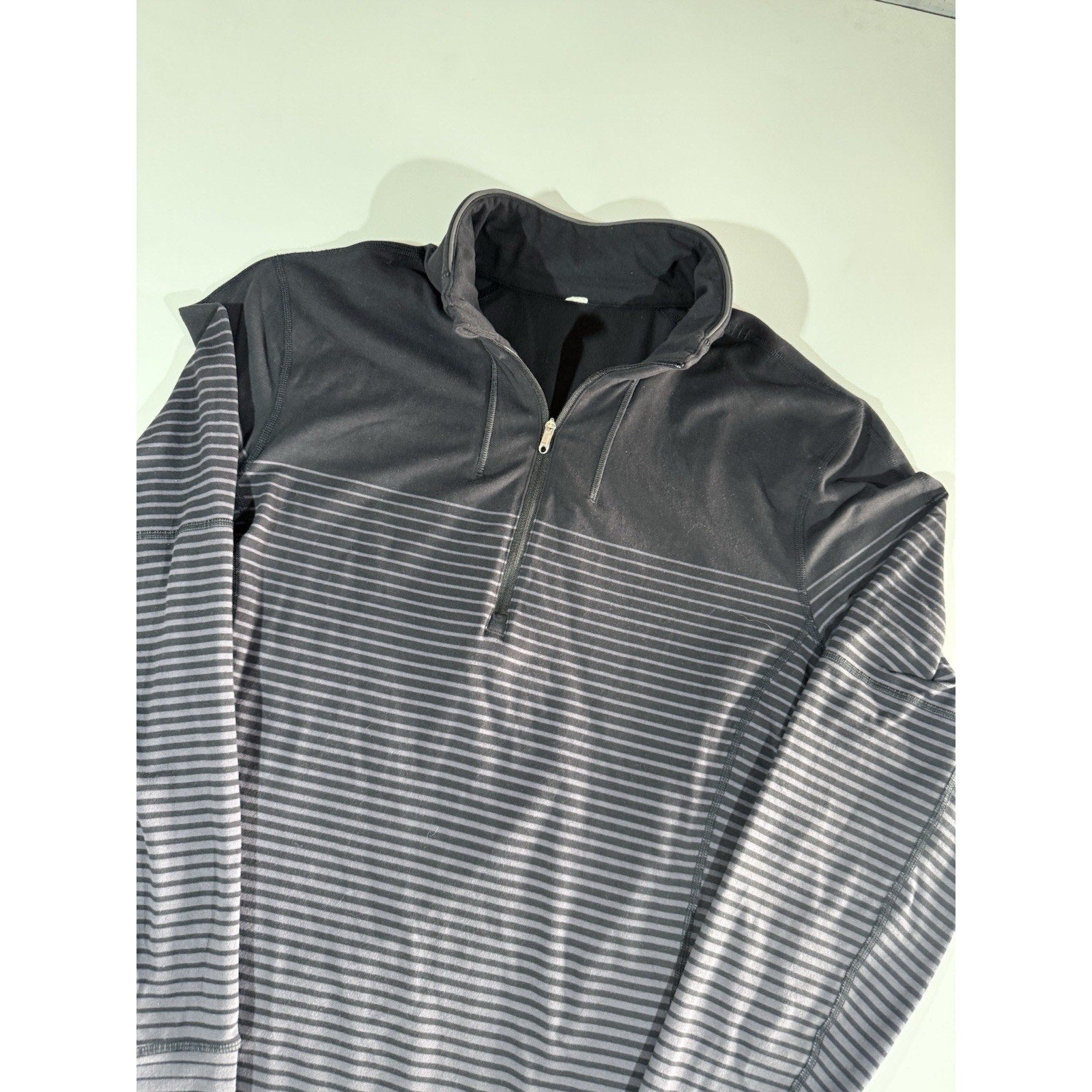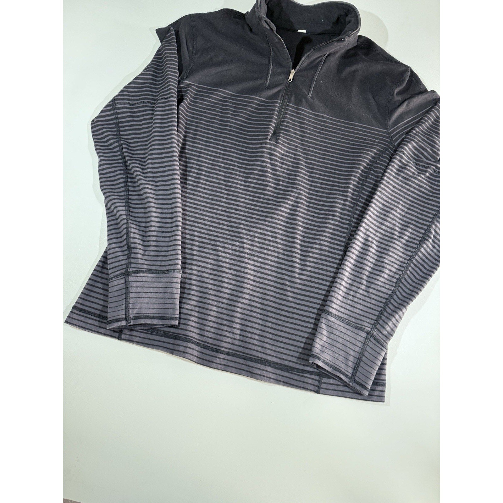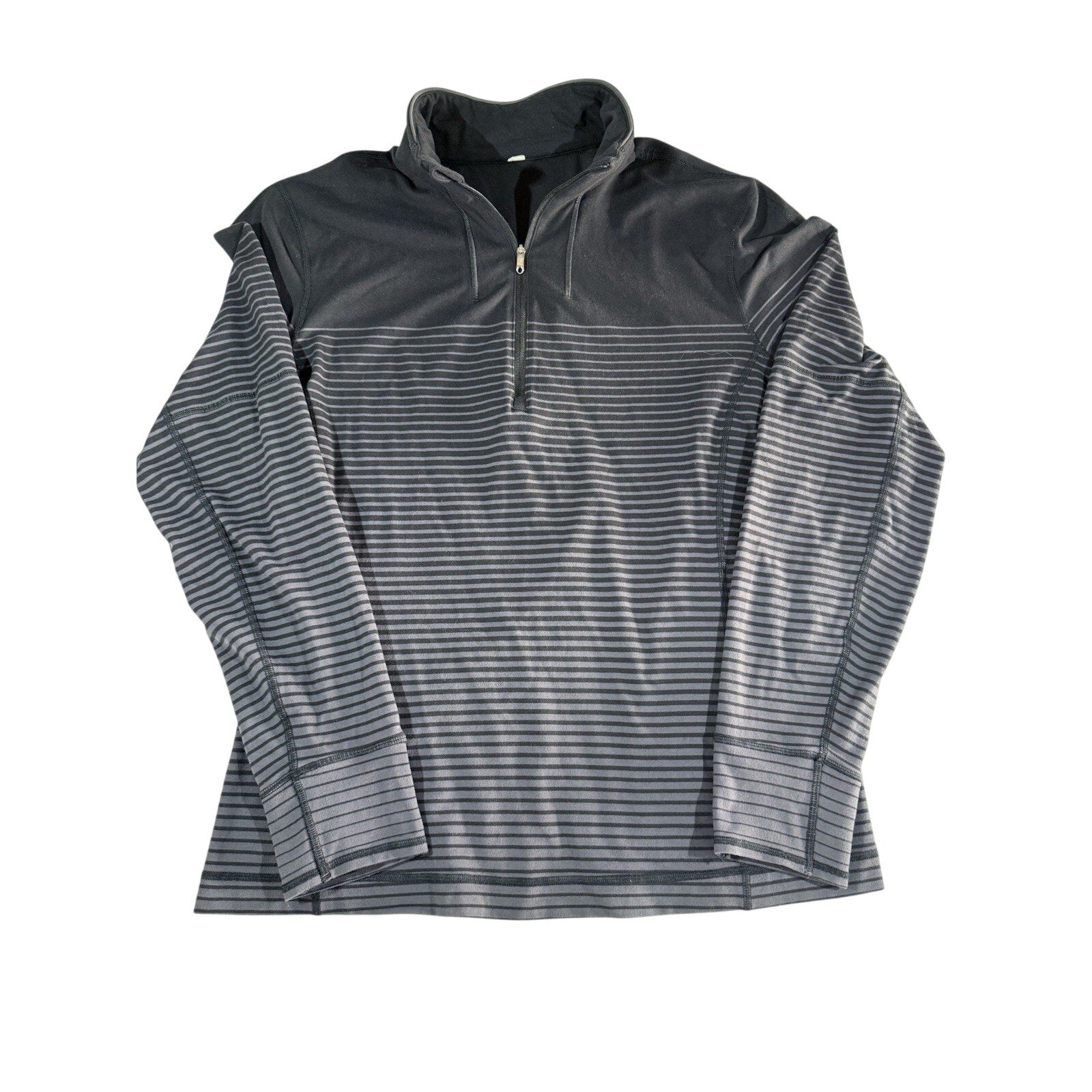 Lululemon Sweat Session 1/2 Zip Mens Large Black Gray Ombré Stripes Performance