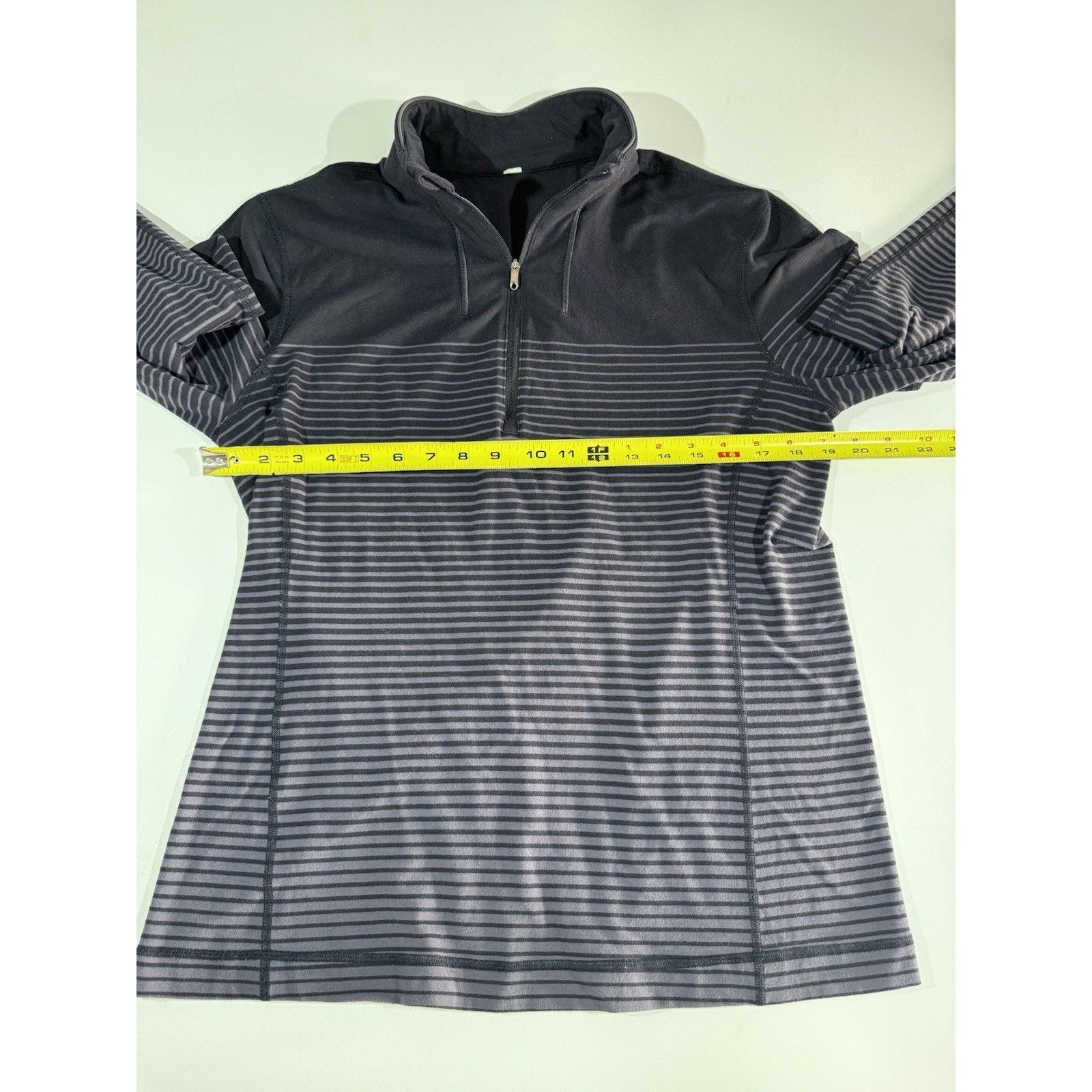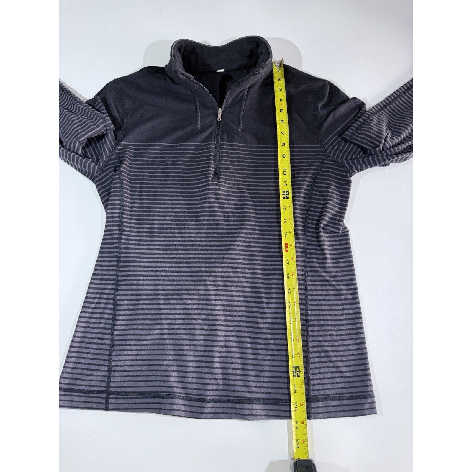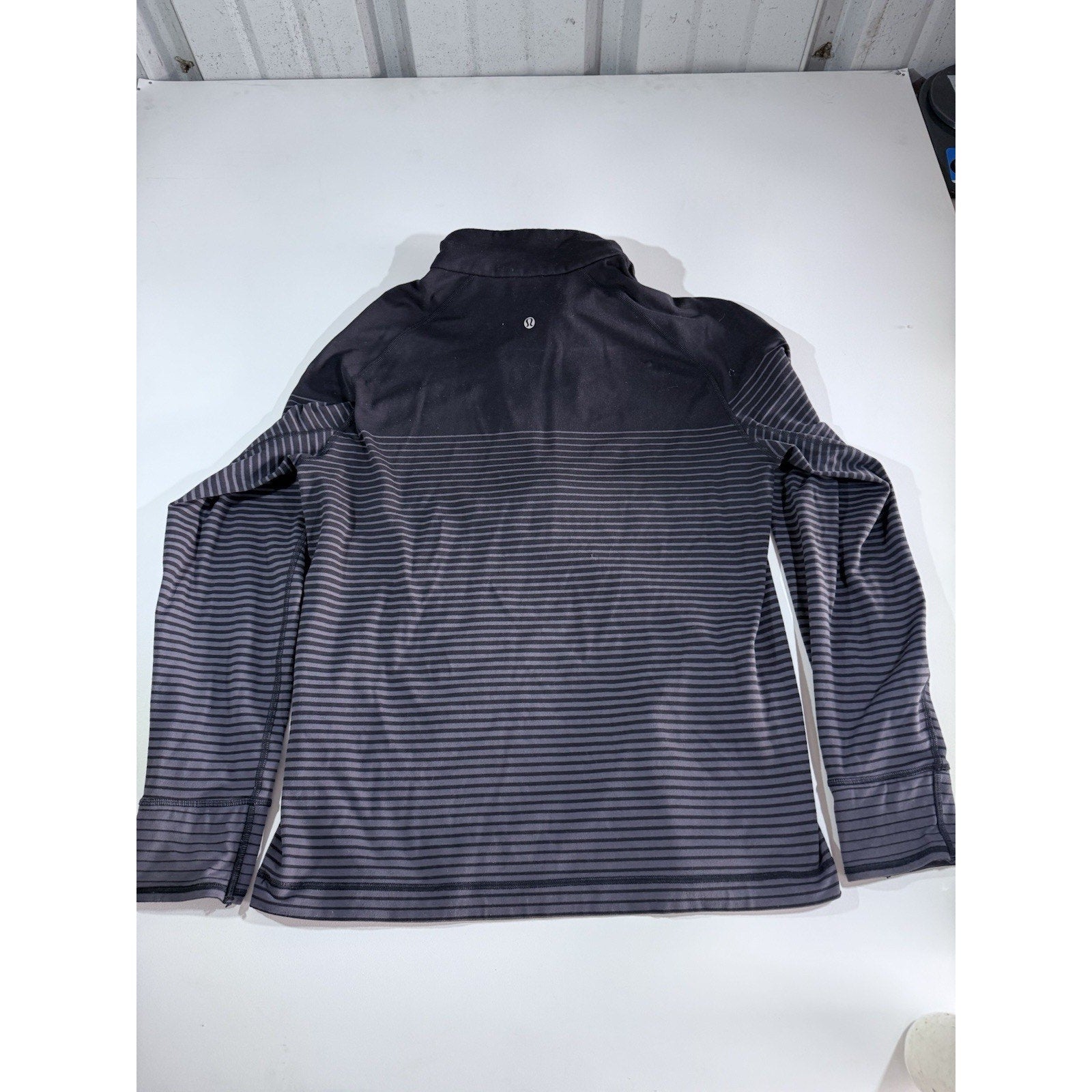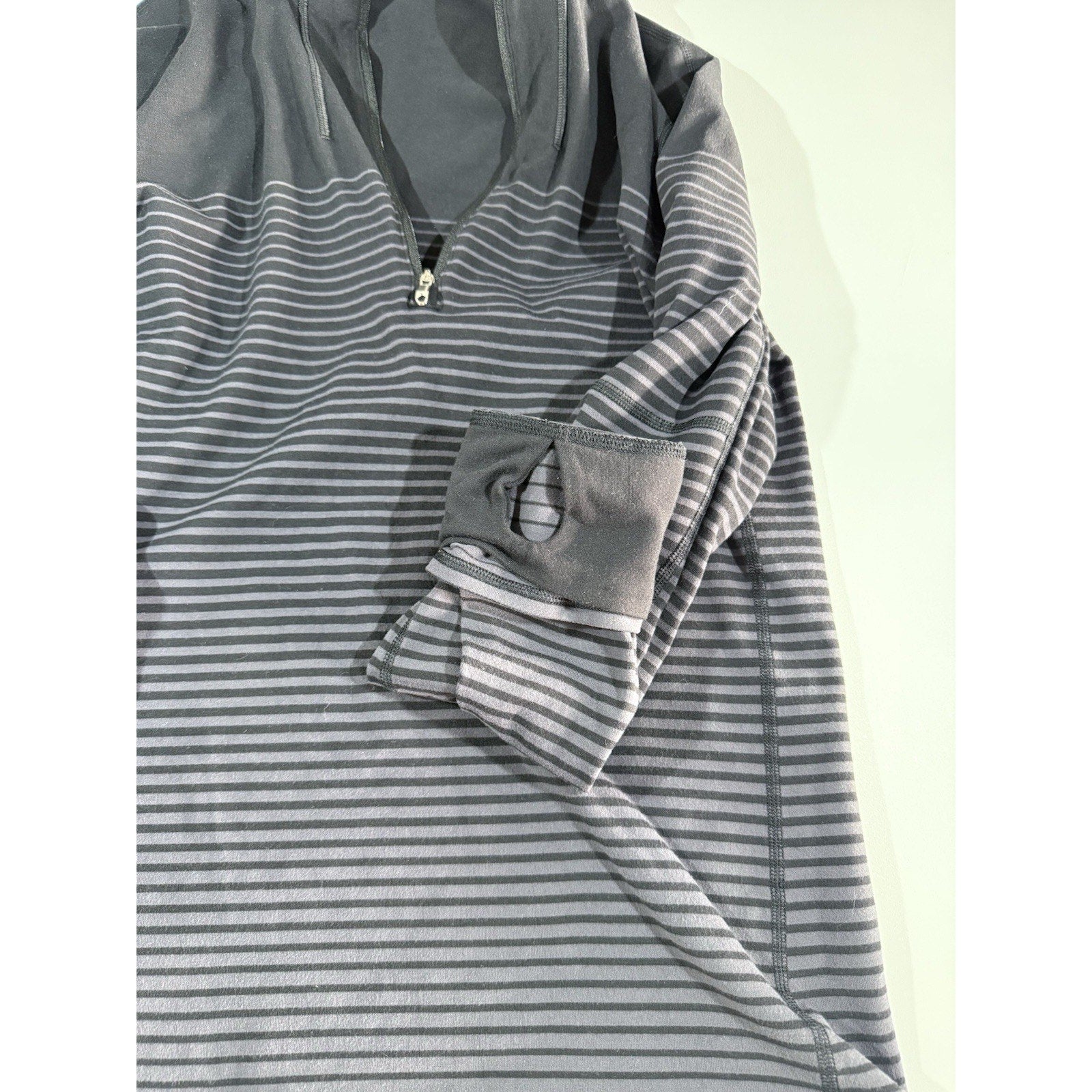 Lululemon Sweat Session 1/2 Zip Mens Large Black Gray Ombré Stripes Performance