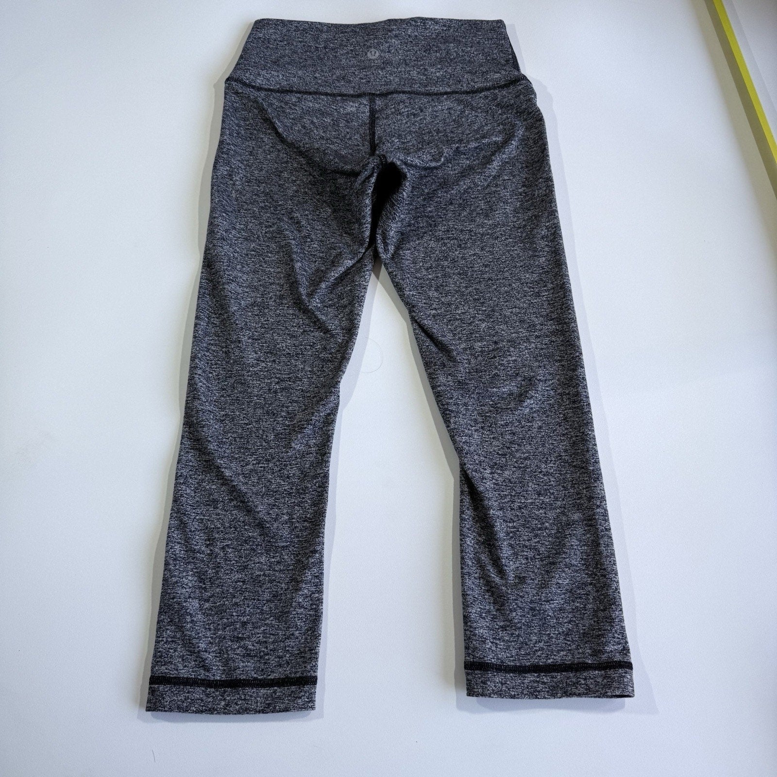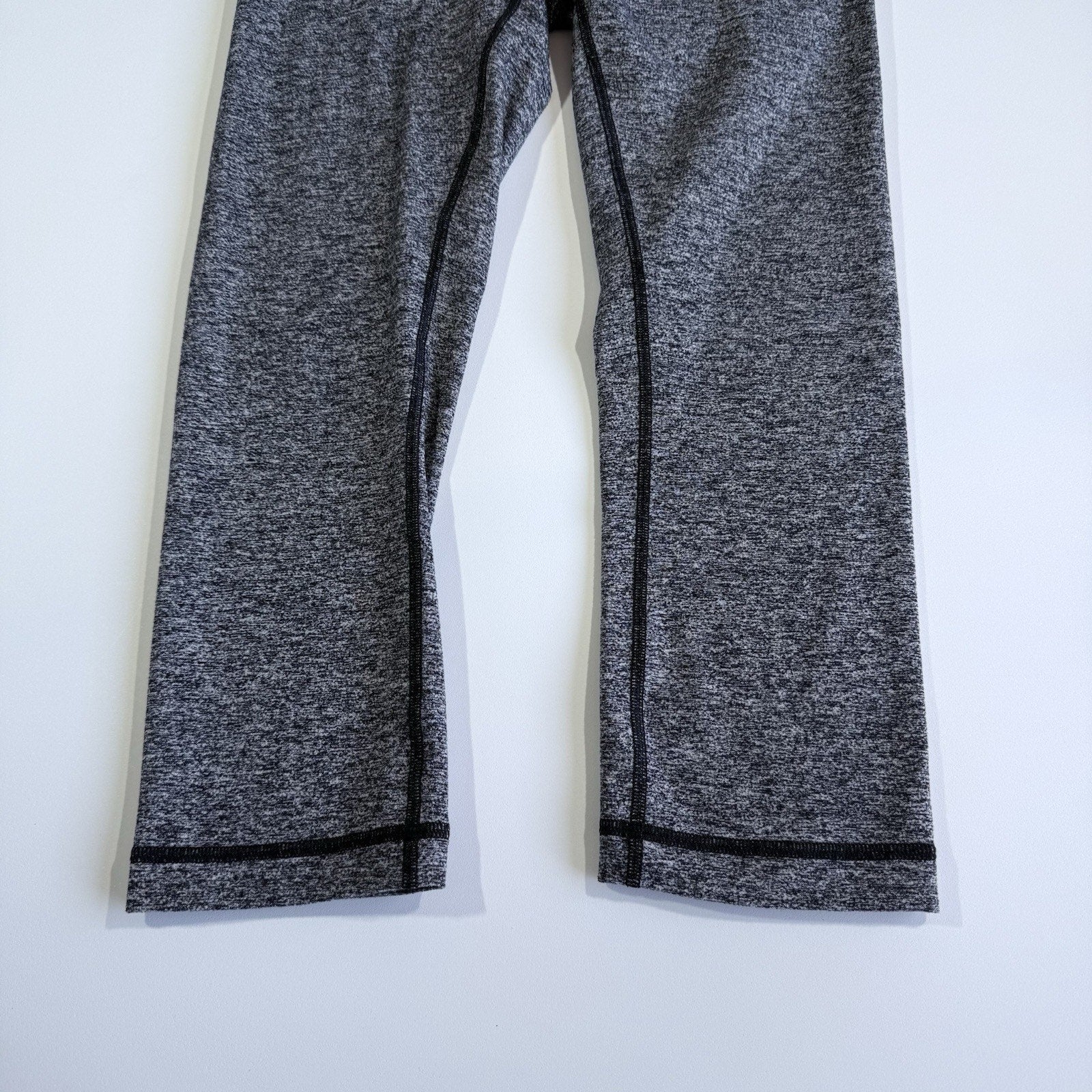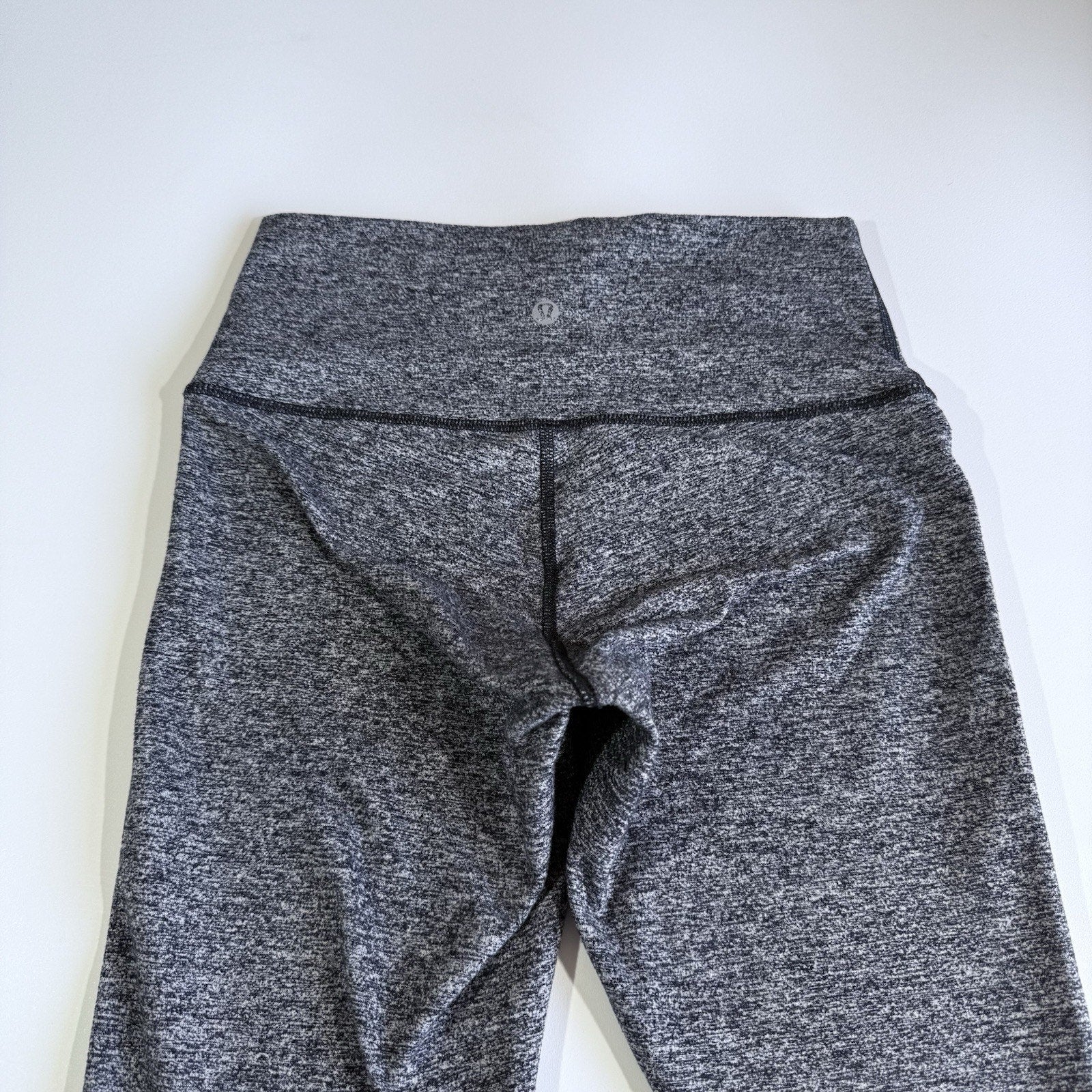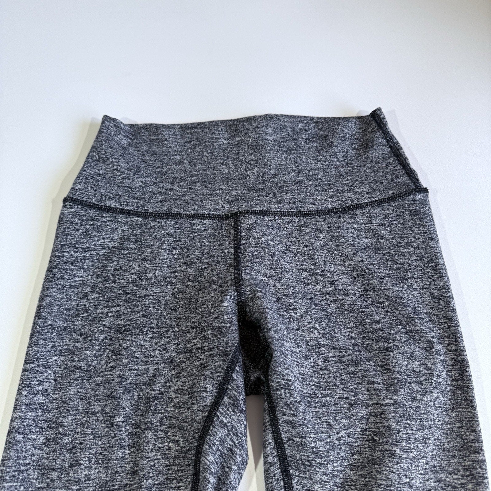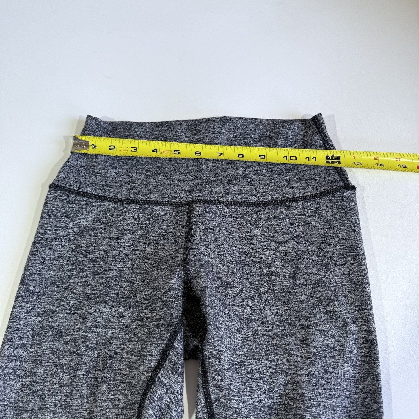 The Lululemon Wunder Under Leggings in Daisy Dust Print Gray, size 6, are high-performance athletic leggings designed for women. With a compression fit in the leg area, these leggings are perfect for activities like gym training, yoga, or running. Made by lululemon athletica, known for their quality activewear, these leggings offer both style and functionality for those looking for comfortable and supportive workout bottoms.