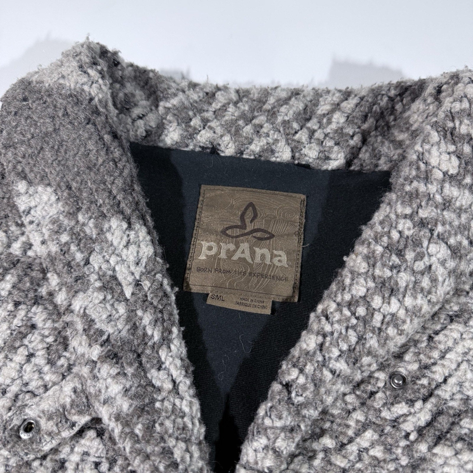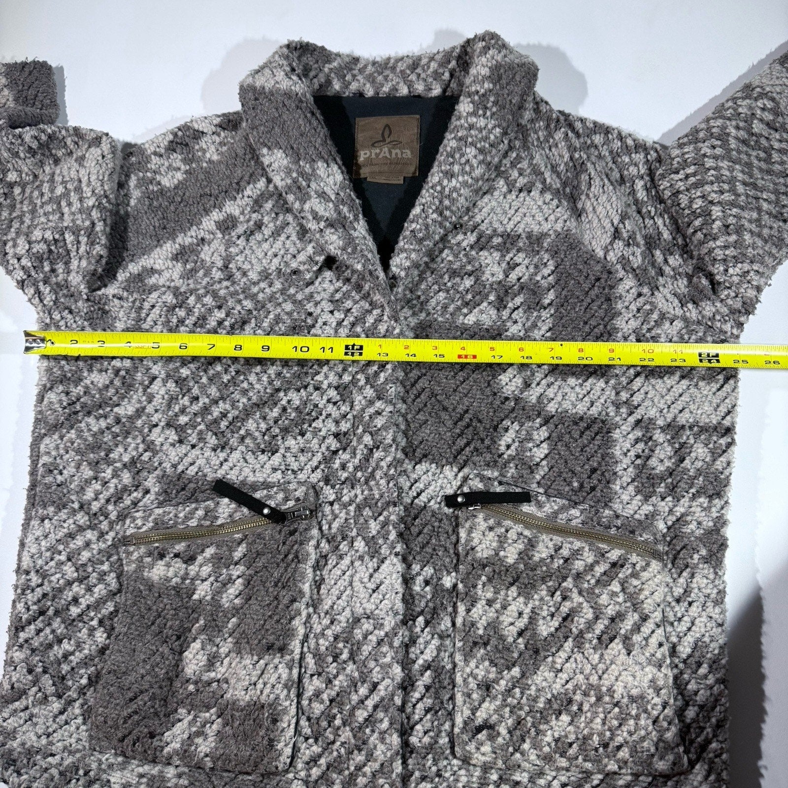 prAna Women’s Wool Blend Jacket Small Gray Knit Zip Front Pockets Boho Sweater