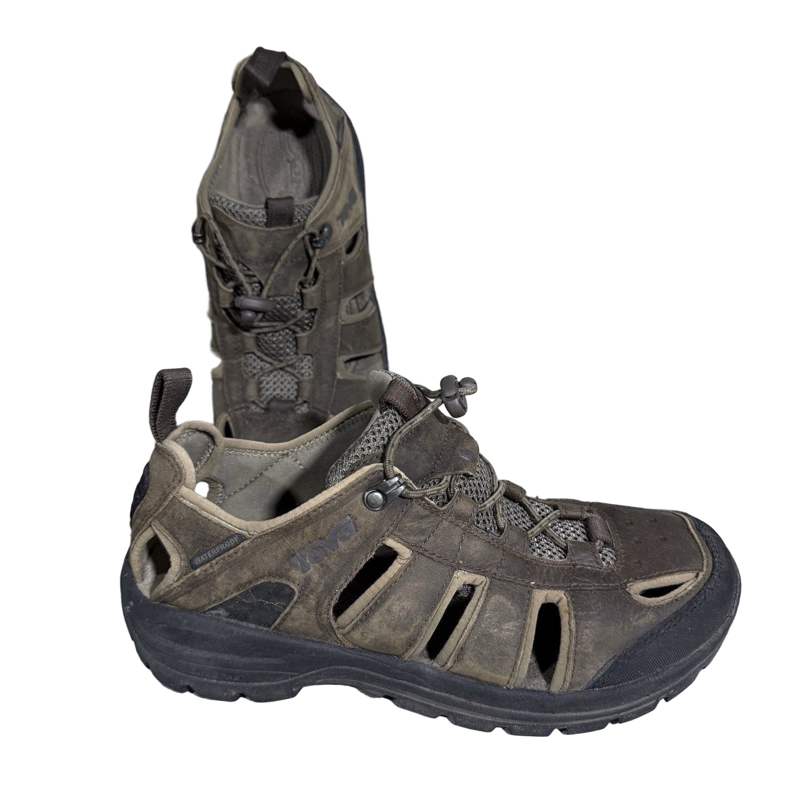 Teva Men’s 7.5 Waterproof Hiking Sandals Brown Leather Outdoor Shoes