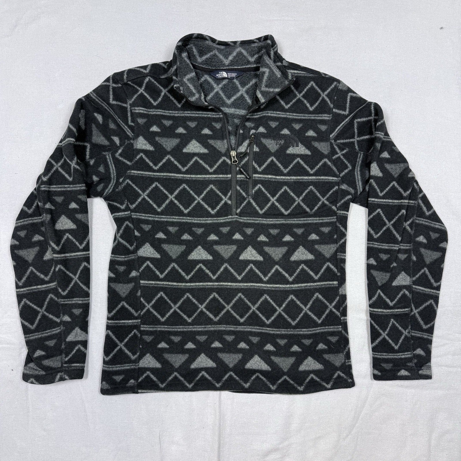 The North Face Black Gray Aztec Quarter Zip Fleece Sweater Pullover Size Small mens