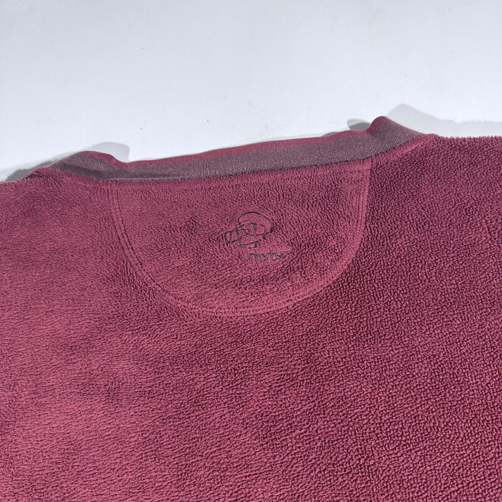 The Vintage Patagonia Rhythm Fleece Sweatshirt in size 2XL is a classic and stylish pullover made from polyester fleece material. This red sweatshirt features a solid pattern, long sleeves, a crew neck, and is machine washable for easy care. With embroidered accents and a logo, it is perfect for outdoor activities like hiking and walking, making it a versatile piece for fall, winter, and spring seasons. This 90s-inspired sweatshirt with a preppy style is a timeless addition to any man's wardrobe, ideal for both city and vintage fashion enthusiasts.