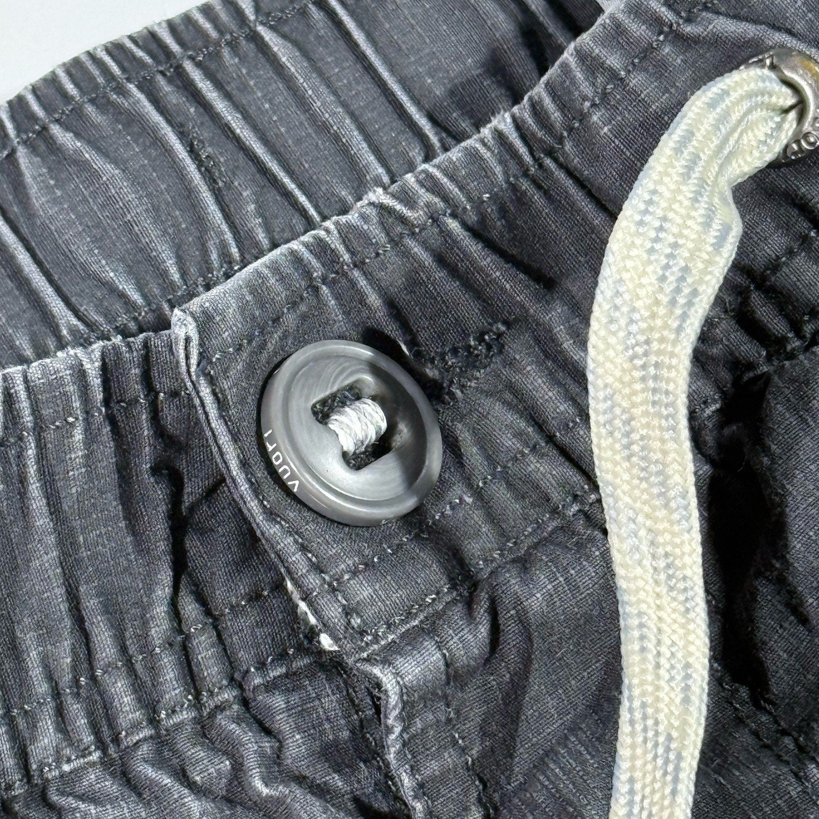 The Vuori Men's Small Gray Ripstop Pants are perfect for outdoor activities like climbing and hiking. Made with a comfortable blend of spandex and cotton, these pants feature a stretchy fabric for added mobility. The zip pockets make it easy to store essentials while on the go, and the adjustable waist ensures a personalized fit. With a jogger style and straight leg design, these pants are both stylish and functional for adventures in nature and sports. Easy to care for with machine washable instructions, these pants are a versatile addition to any wardrobe.